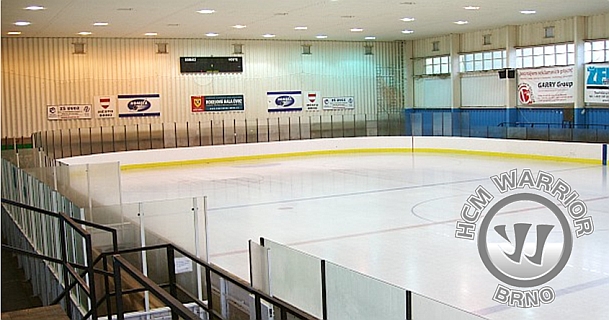 Ledová plocha – rozměry 60 x 30 m, mantinely, ochranné sítě