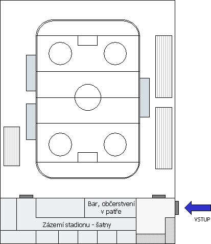 V prvním patře haly je bar s občerstvením s výhledem na ledovou plochu